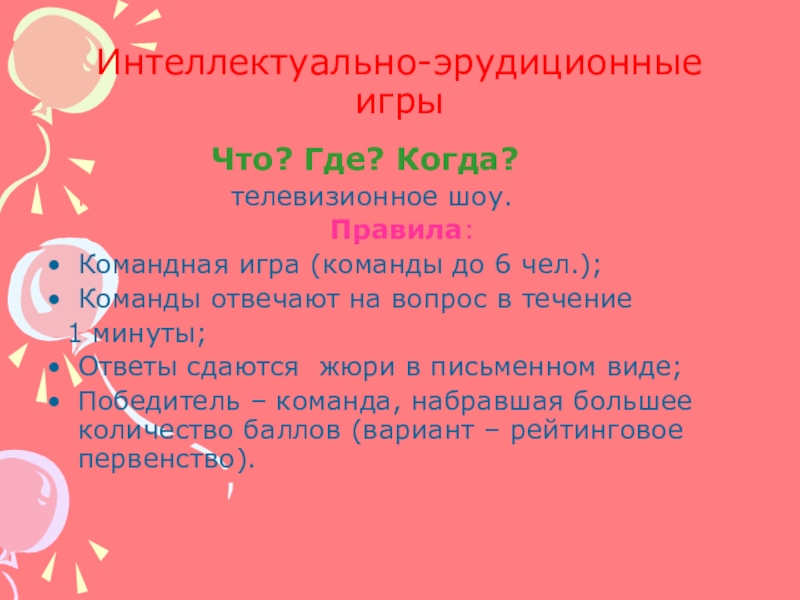 Слайд 8Интеллектуально-эрудиционные игры