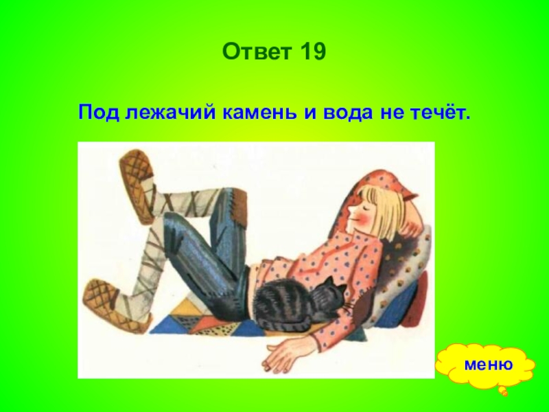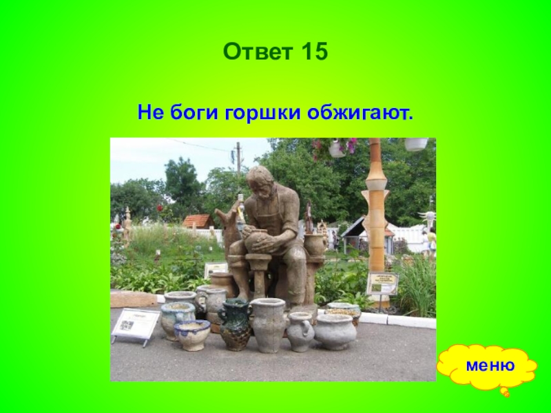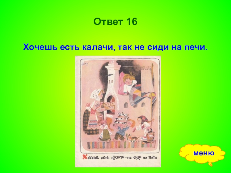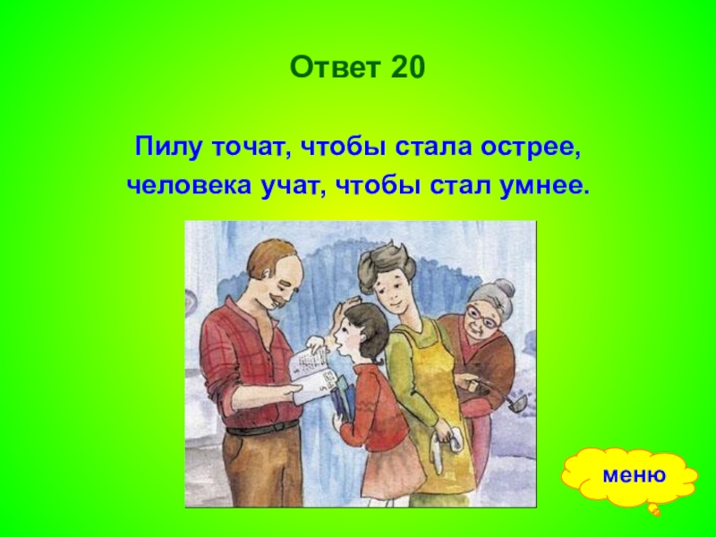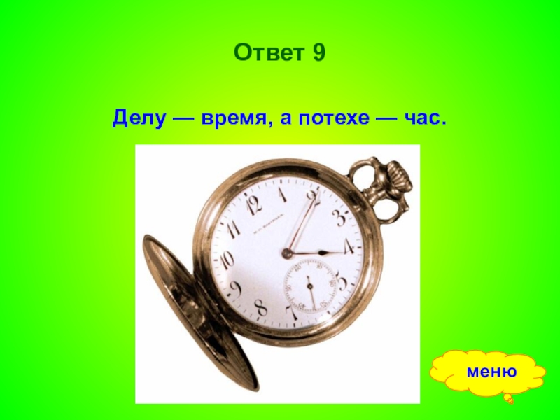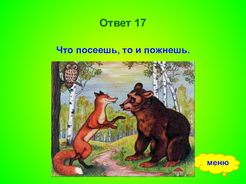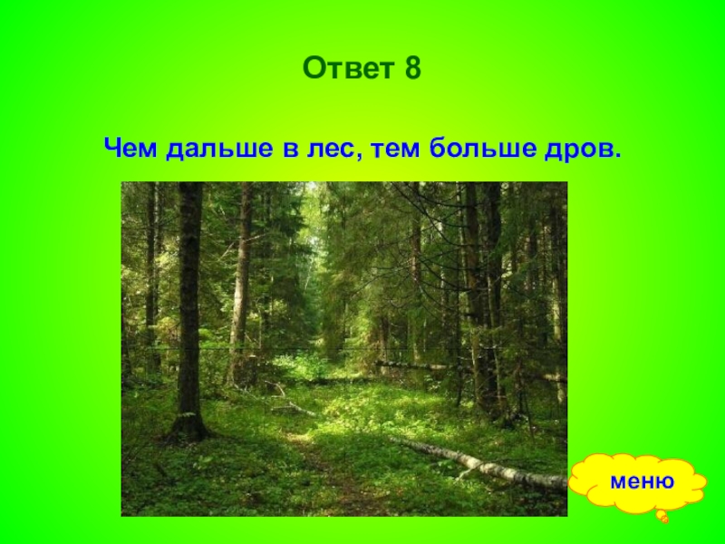 Ответ 8Чем дальше в лес, тем больше дров. меню
