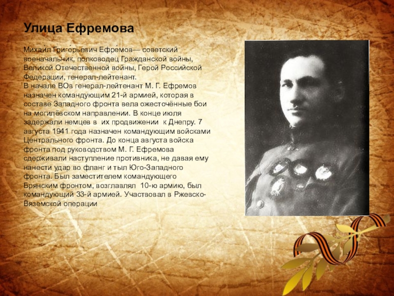 Михаи́л Григо́рьевич Ефре́мов— советский военачальник, полководец Гражданской войны, Великой Отечественной
