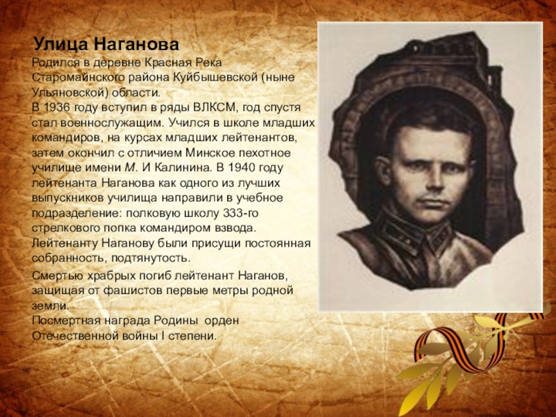 Смертью храбрых погиб лейтенант Наганов, защищая от фашистов первые метры родной земли.