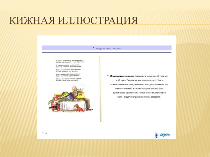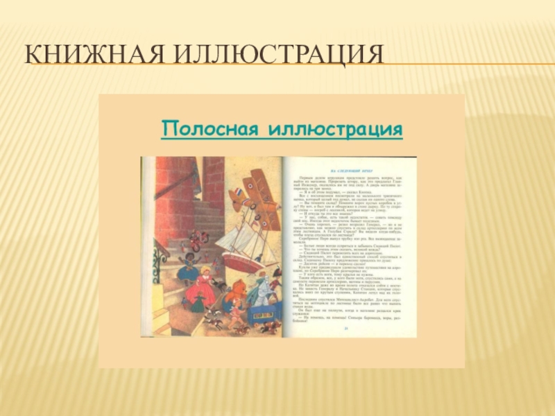 Книжная иллюстра́ция — рисунок, фотография, гравюра или другое изображение, поясняющее текст. Иллюстрации используются для передачи эмоциональной атмосферы художественного произведения, визуализации героев повествования...