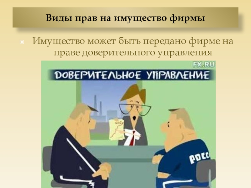 Виды прав на имущество фирмыИмущество может быть передано фирме на праве доверительного управления