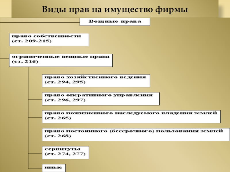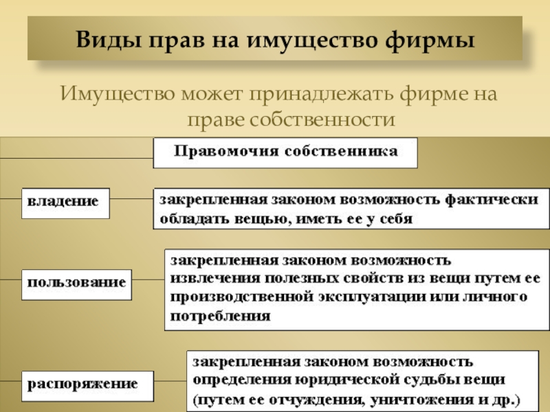Виды прав на имущество фирмыИмущество может принадлежать фирме на праве собственности