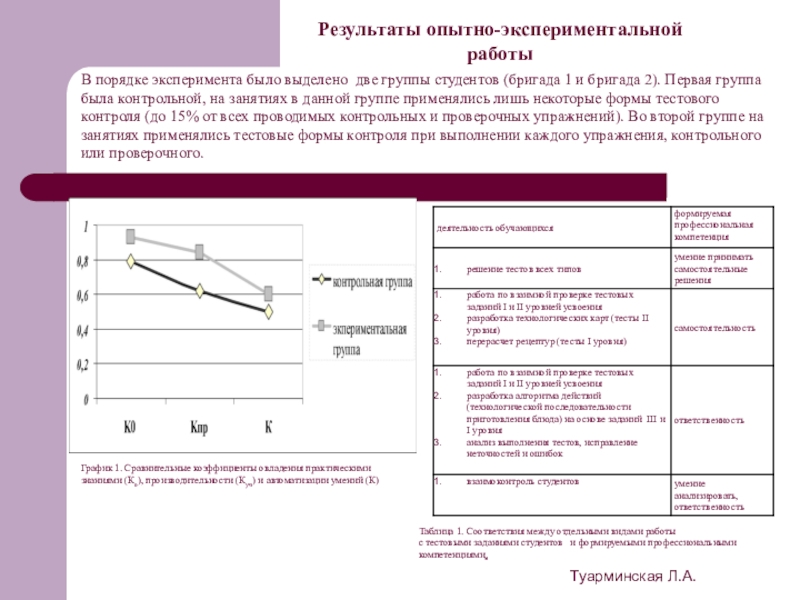 В порядке эксперимента было выделено две группы студентов (бригада 1 и бригада 2). Первая группа была контрольной, на занятиях в данной группе применялись лишь некоторые формы тестового контроля (до 15% от всех проводимых контрольных и проверочных упражнений). Во второй группе на занятиях применялись тестовые формы контроля при выполнении каждого упражнения, контрольного или проверочного.