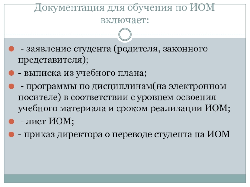 Слайд 28Документация для обучения по ИОМ включает: