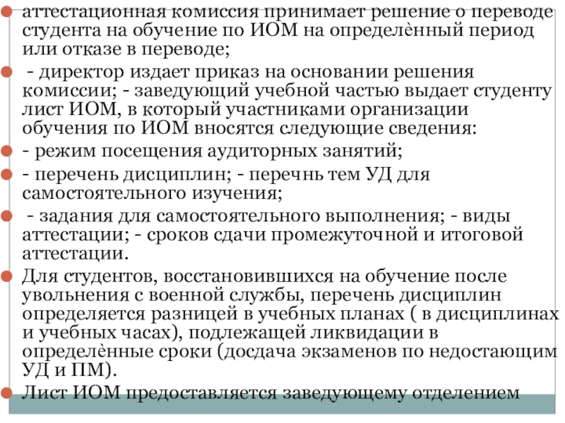 Слайд 24аттестационная комиссия принимает решение о переводе студента на обучение по ИОМ