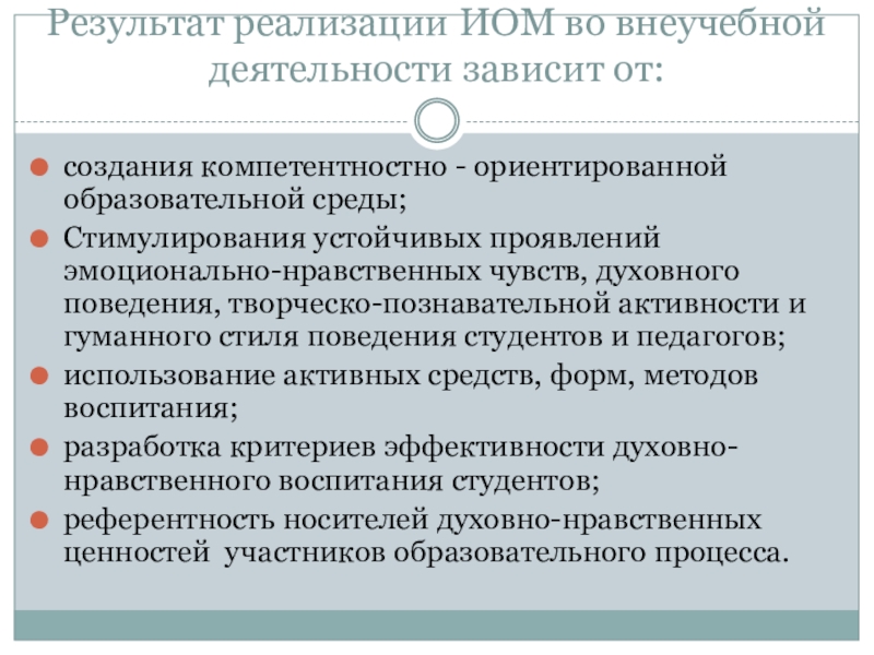 Слайд 33Результат реализации ИОМ во внеучебной деятельности зависит от: