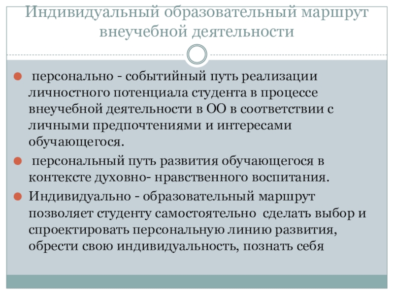 Слайд 30Индивидуальный образовательный маршрут внеучебной деятельности