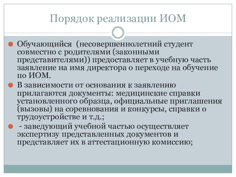 - приказ директора о переводе студента на ИОМ