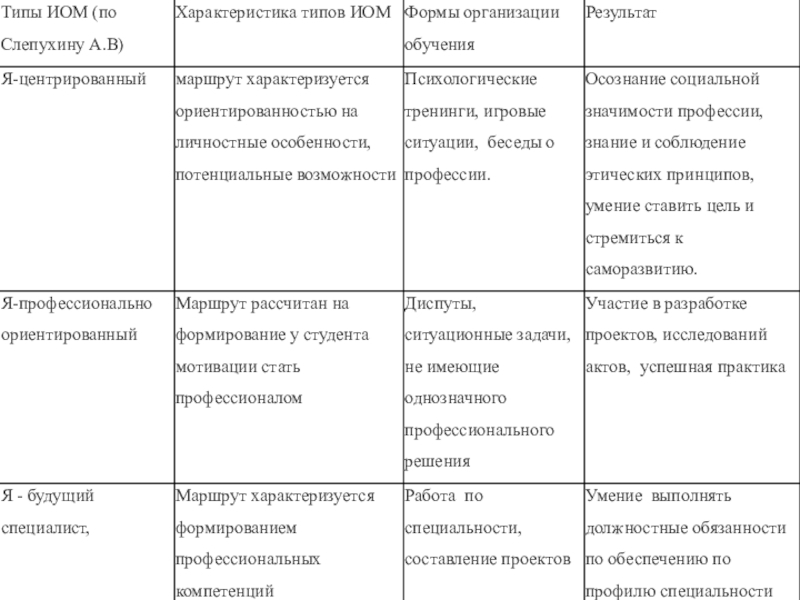 Содержание образования по ИОМ составляет самостоятельное освоение студентами разделов образовательной программы по специальности или профессии.