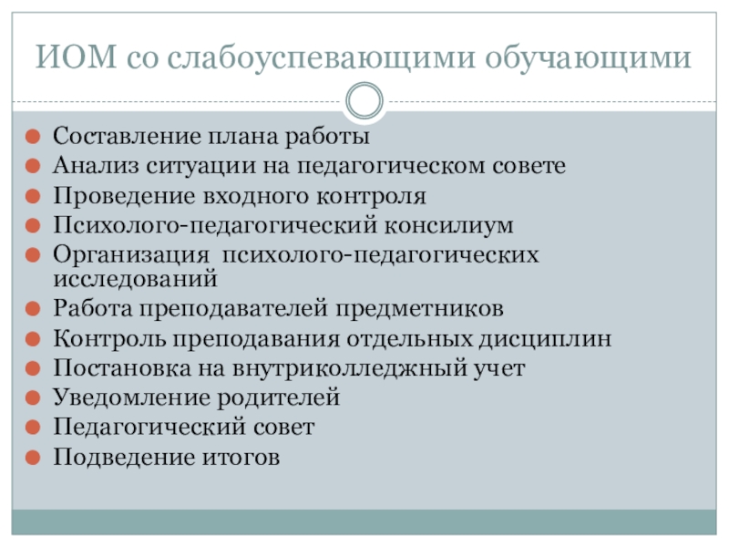 Слайд 34ИОМ со слабоуспевающими обучающими