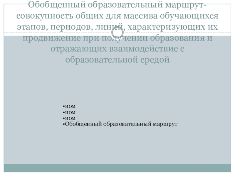 Слайд 10Обобщенный образовательный маршрут-совокупность общих для массива обучающихся этапов, периодов, линий, характеризующих