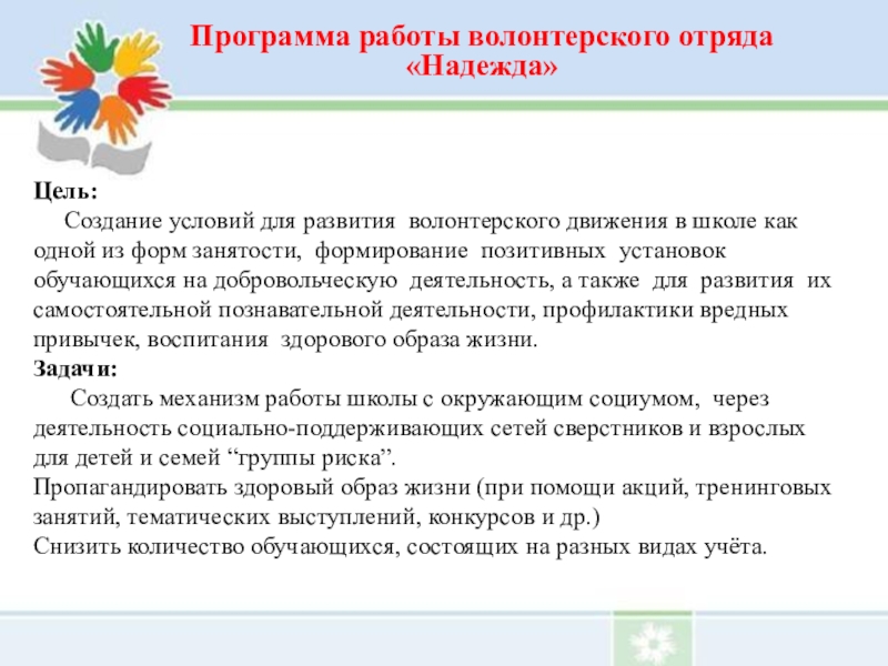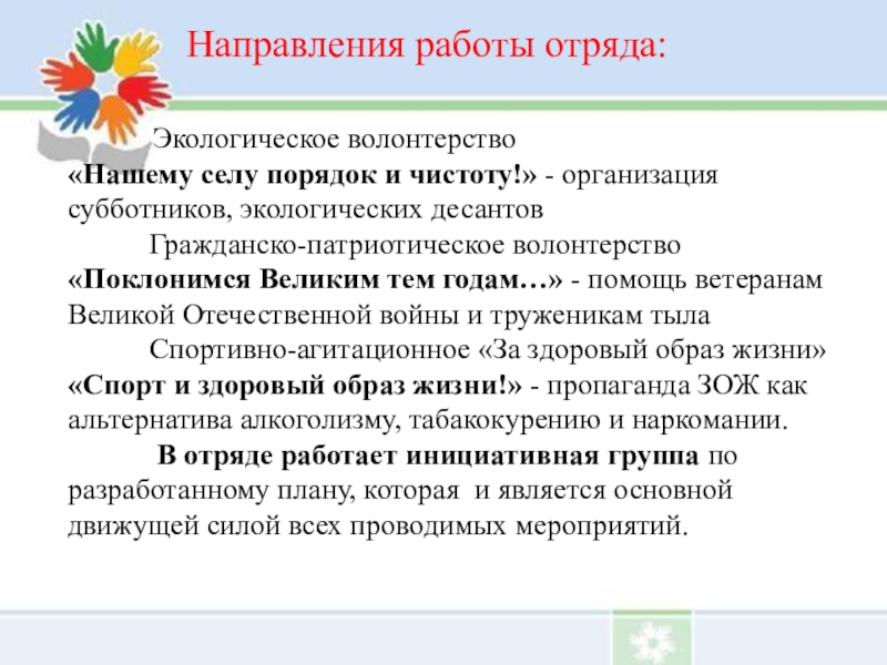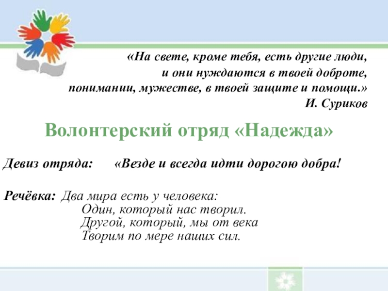 Девиз отряда: «Везде и всегда идти дорогою добра!