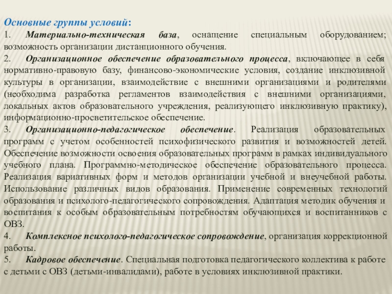 Слайд 10Основные группы условий: