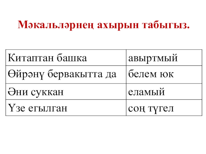 Мәкальләрнең ахырын табыгыз.