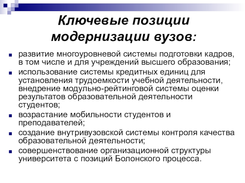 Слайд 13Ключевые позиции модернизации вузов: