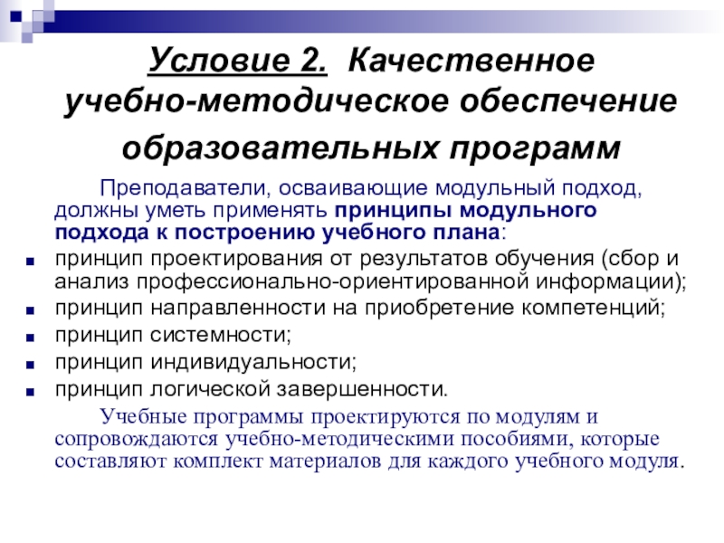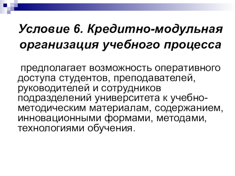 Слайд 22Условие 6. Кредитно-модульная организация учебного процесса