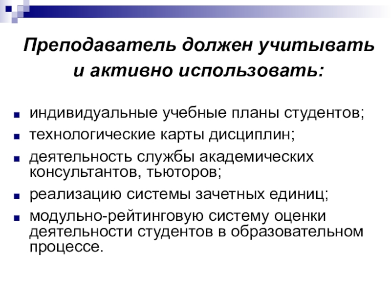 Слайд 17Преподаватель должен учитывать и активно использовать: