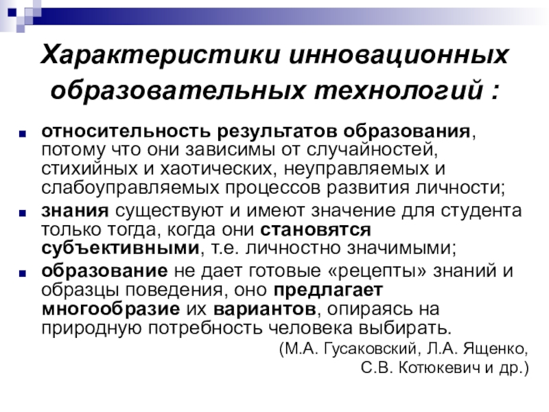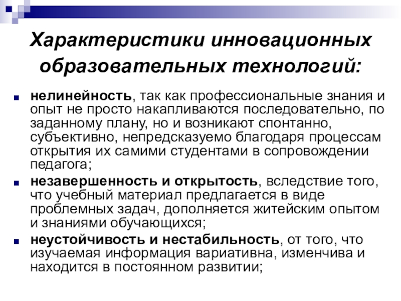 Слайд 7Характеристики инновационных образовательных технологий :