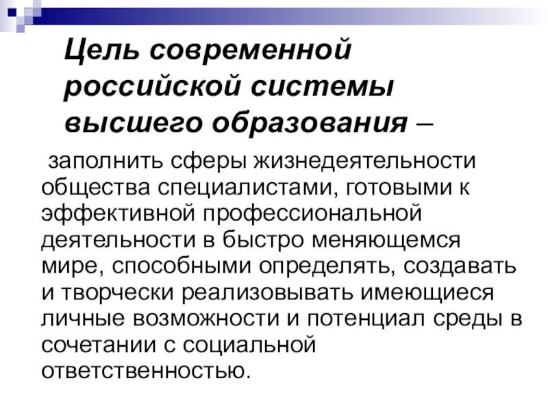 Слайд 2Цель современной российской системы высшего образования –
