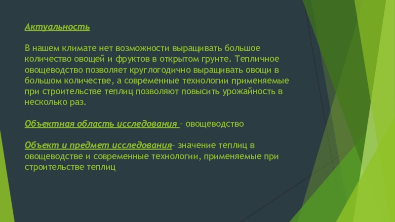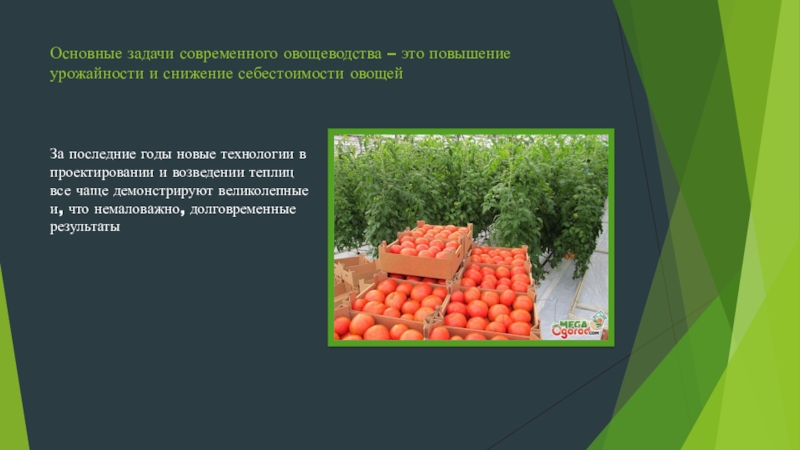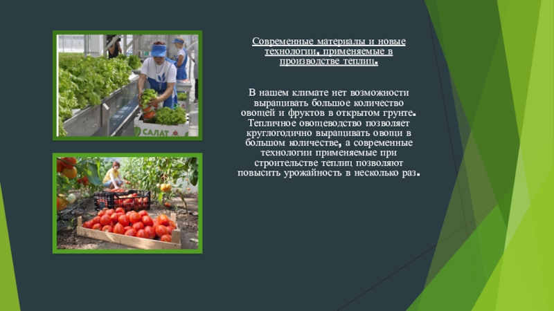 Тепличное овощеводство позволяет обеспечивать круглогодовое снабжение населения свежими овощами