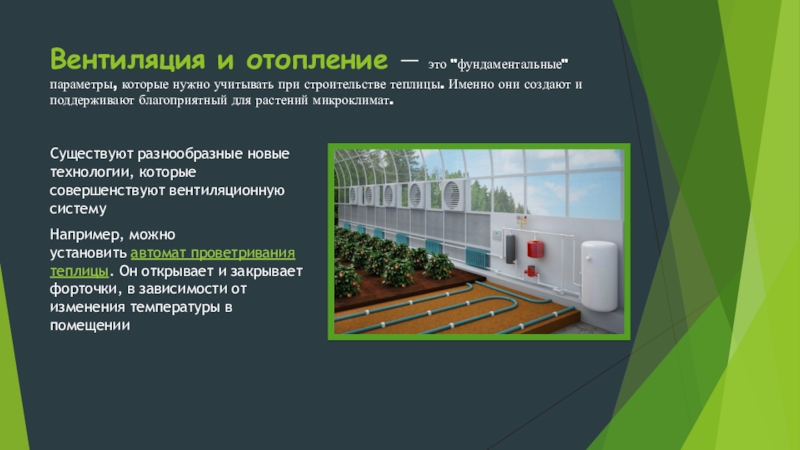 Например, можно установить автомат проветривания теплицы. Он открывает и закрывает форточки, в зависимости от изменения температуры в помещении