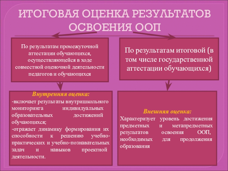 Характеризует уровень достижения предметных и метапредметных результатов освоения ООП, необходимых для продолжения образования