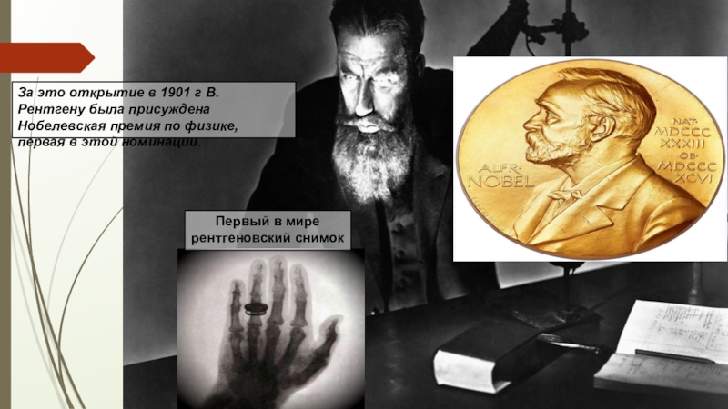 Слайд 12За это открытие в 1901 г В. Рентгену была присуждена Нобелевская
