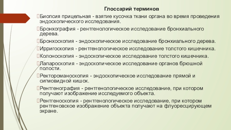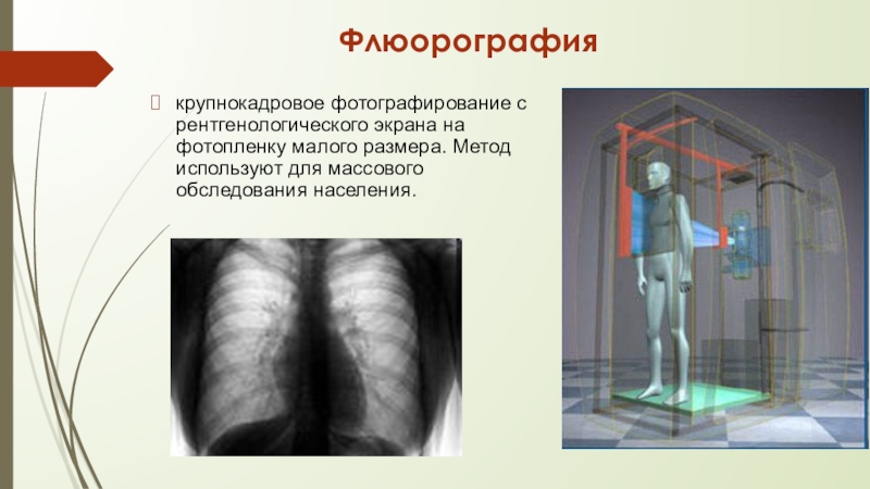 Рентгеноскопия – метод просвечивания, осмотр исследуемого органа за специальным рентгеновским экраном.