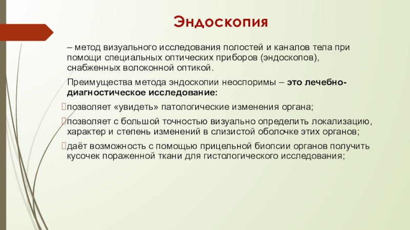 Эндоскопия - метод визуального исследования полостей и каналов тела при помощи оптических приборов (эндоскопов).