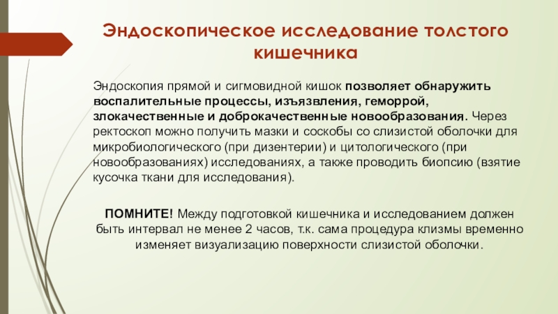 Слайд 46Эндоскопическое исследование толстого кишечника