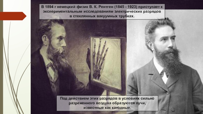 Слайд 9В 1894 г немецкий физик В. К. Рентген (1845 - 1923)