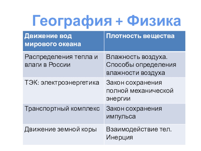 Слайд 12География + Физика