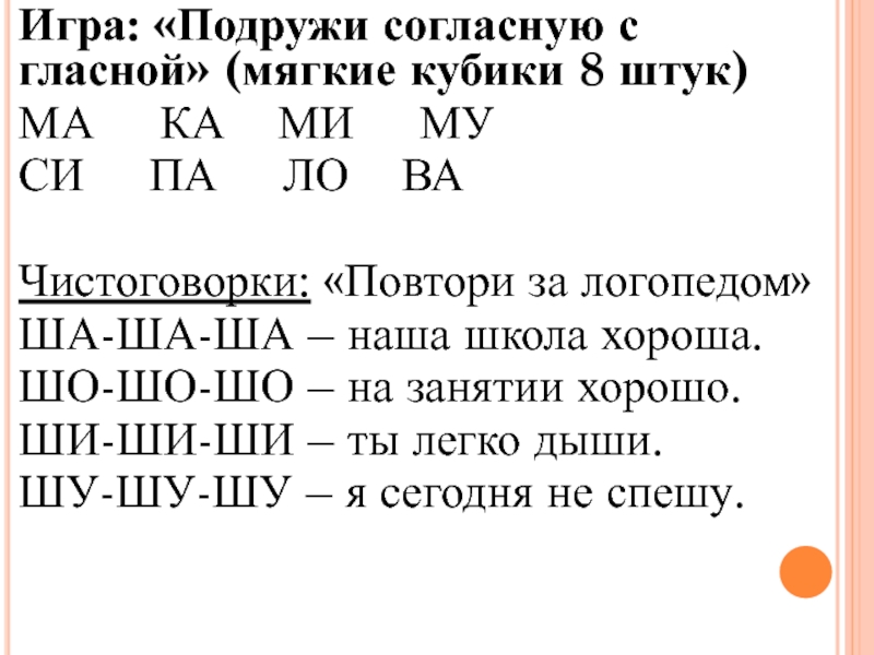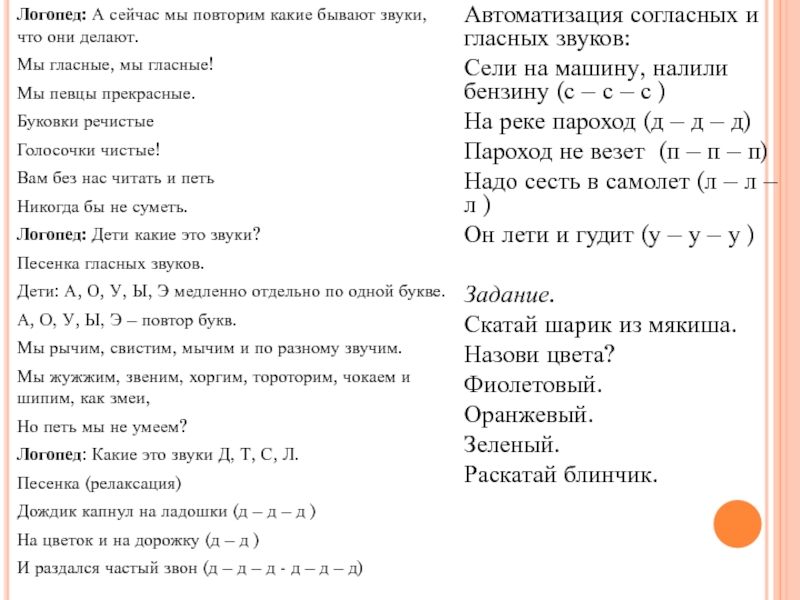 Автоматизация согласных и гласных звуков: