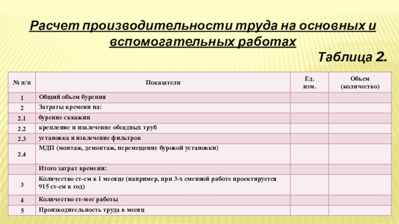 Слайд 33Расчет производительности труда на основных и вспомогательных работах