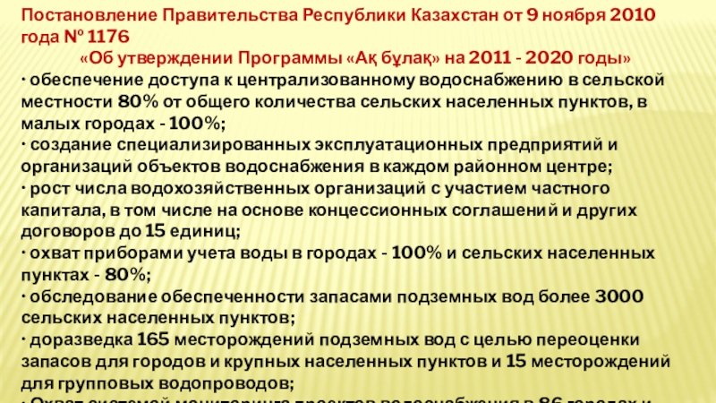 Слайд 9Постановление Правительства Республики Казахстан от 9 ноября 2010 года № 1176