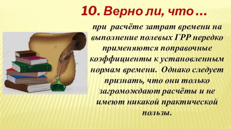 ГРР нередко применяются поправочные коэффициенты к установленным нормам времени. Однако следует признать, что они только загромождают расчёты и не имеют никакой практической пользы.