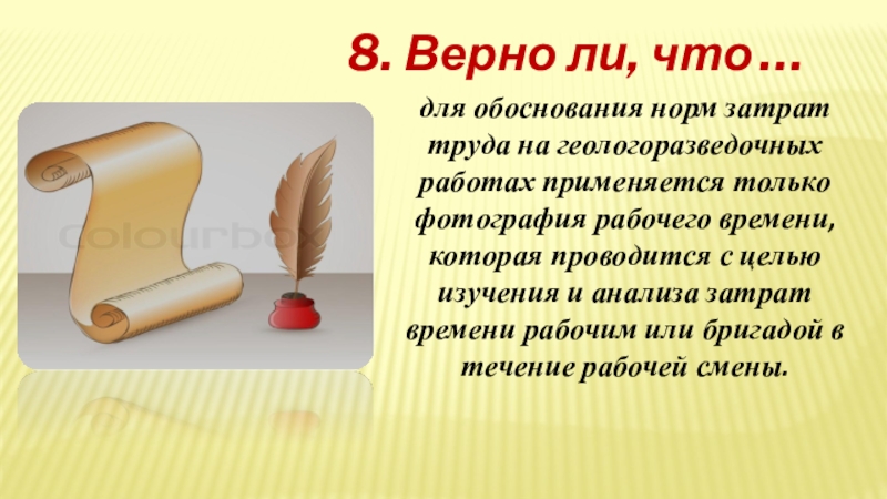 работах применяется только фотография рабочего времени, которая проводится с целью изучения и анализа затрат времени рабочим или бригадой в течение рабочей смены.