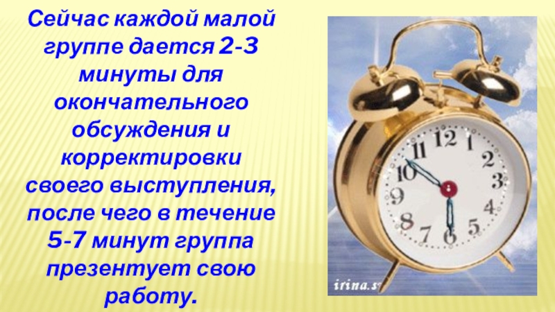 Слайд 37Сейчас каждой малой группе дается 2-3 минуты для окончательного обсуждения и