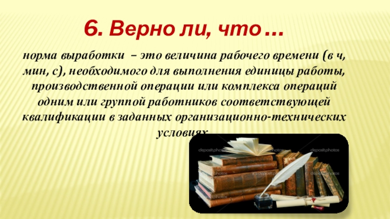 (в ч, мин, с), необходимого для выполнения единицы работы, производственной операции или комплекса операций одним или группой работников соответствующей квалификации в заданных организационно-технических условиях.