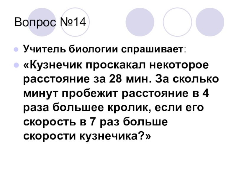 За сколько минут пробежит расстояние в 4 раза большее кролик, если его скорость в 7 раз больше скорости кузнечика?»