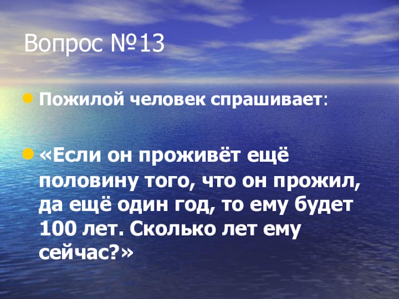 он прожил, да ещё один год, то ему будет 100 лет. Сколько лет ему сейчас?»
