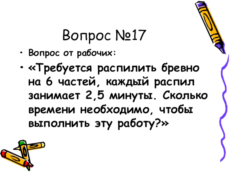 распил занимает 2,5 минуты. Сколько времени необходимо, чтобы выполнить эту работу?»