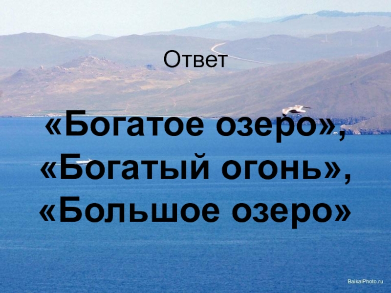 Слайд 5Ответ «Богатое озеро», «Богатый огонь», «Большое озеро»