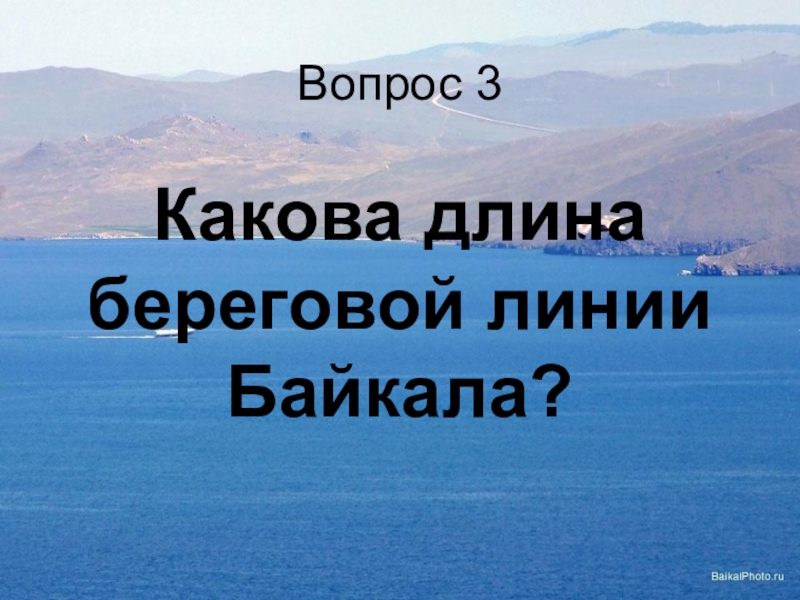 Слайд 6Вопрос 3 Какова длина береговой линии Байкала?