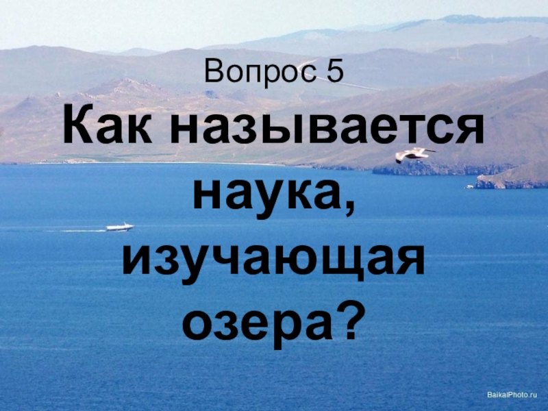 Слайд 10Вопрос 5 Как называется наука, изучающая озера?