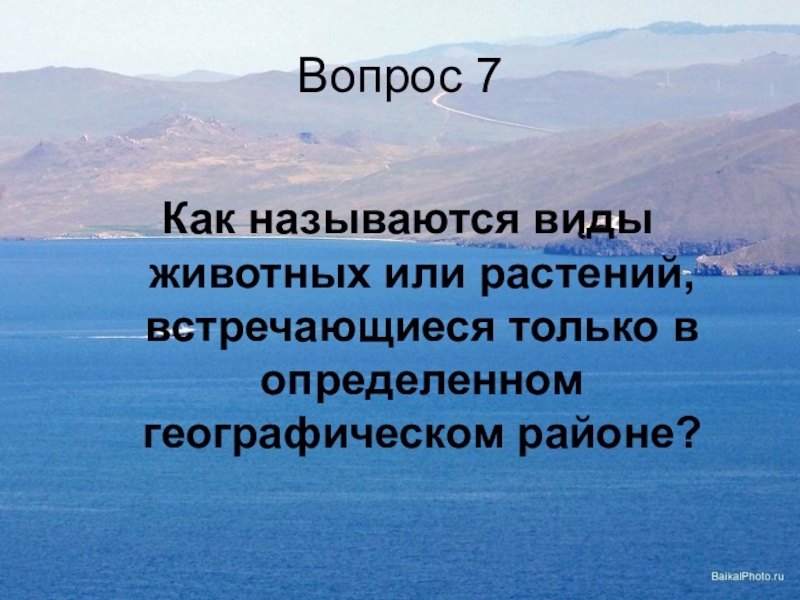 Вопрос 7			Как называются виды животных или растений, встречающиеся только в определенном географическом районе?