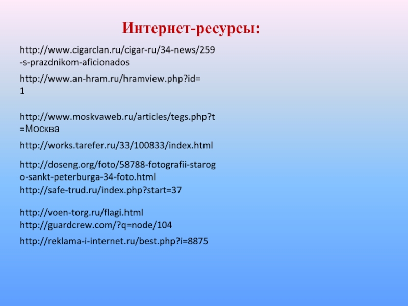 Это сайт презентаций, где можно хранить и обмениваться своими презентациями, докладами, проектами, шаблонами в формате PowerPoint с другими пользователями. Мы помогаем школьникам, студентам, учителям, преподавателям хранить и обмениваться учебными материалами.