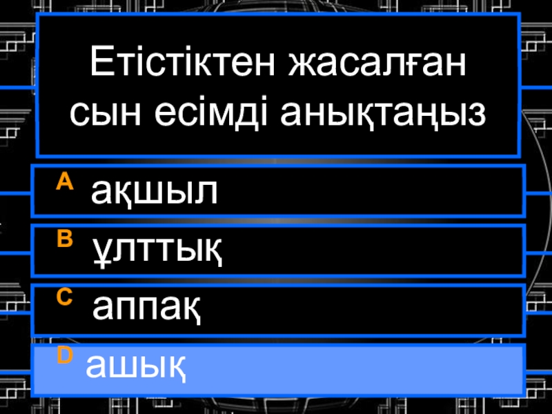 Презентация, доклад на тему Интеллектуальная игра по казахскому языку Кім миллионер болғысы келеді?