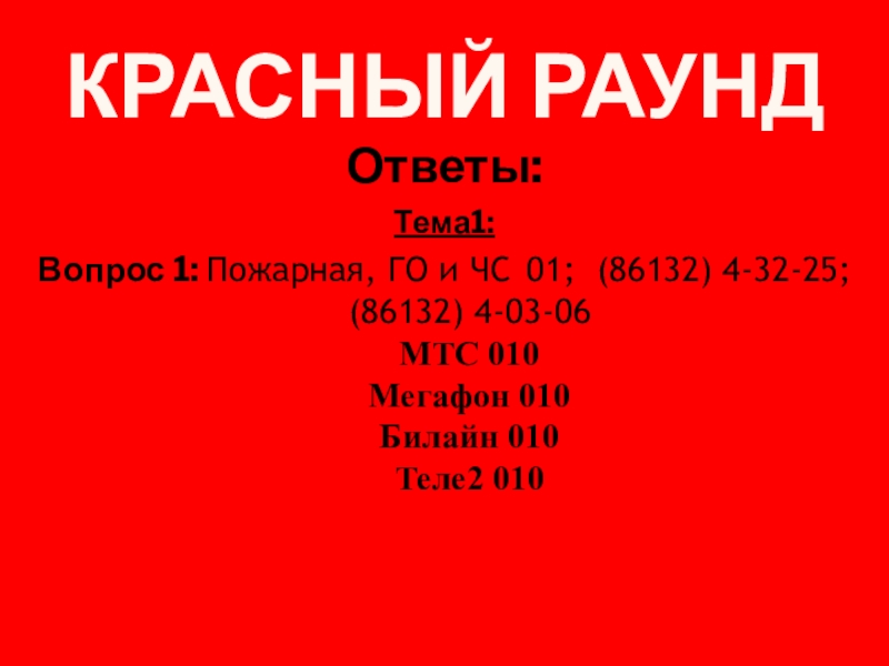 Вопрос 1: Назовите номера телефонов